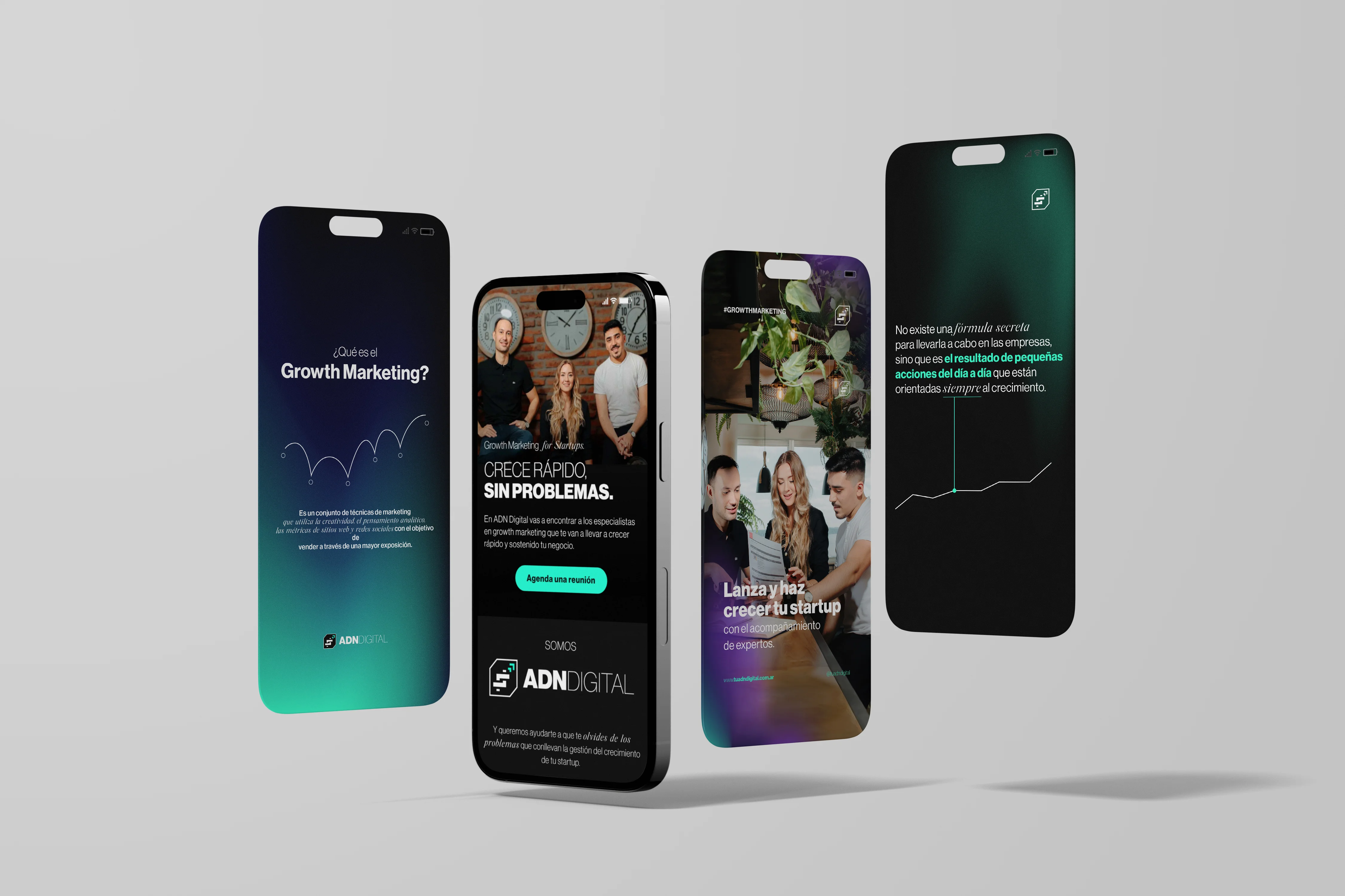 ADN Digital, an agency specializing in growth marketing for startups, needed an update to its graphic identity to better position itself for new challenges in digital marketing and content creation. The focus was on helping startups quickly and sustainably develop their online presence, enhancing their identity, social media communication, digital campaigns, and web development.