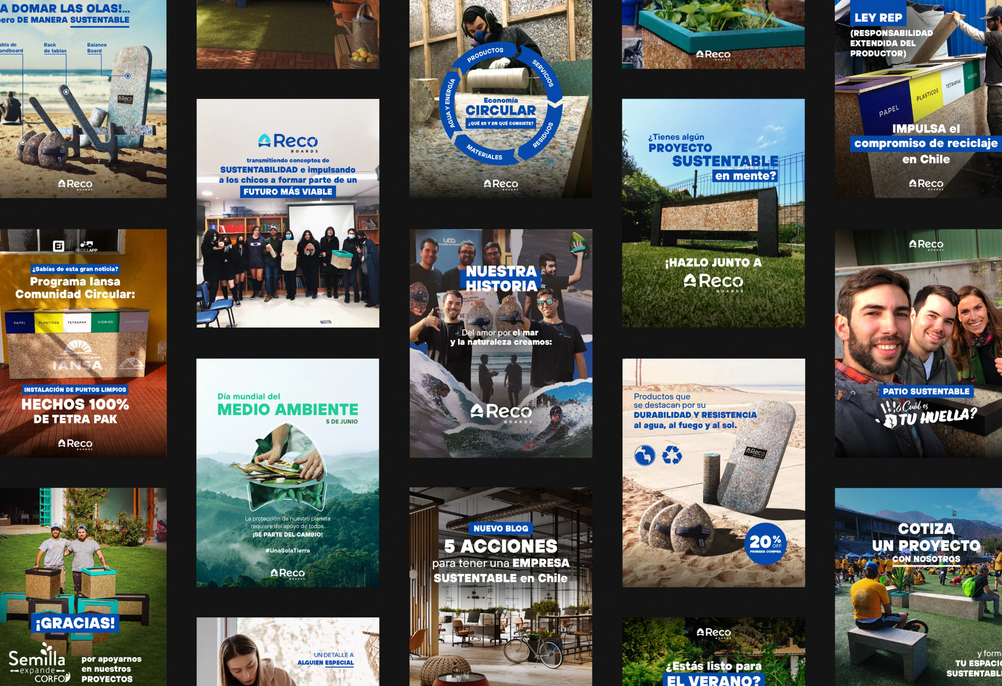 Reco Boards is a Chilean company dedicated to the transformation of packaging, known as Tetra Pak, into a diverse range of sustainable furniture, products, and structures. They required a design adjustment on their website and the creation of graphic pieces to launch their e-commerce platform and position their brand in both B2B and B2C markets.